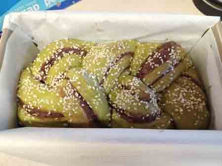 3-strand braided soft and fluffy matcha bread filled with sweet red bean paste is simply irresistible.