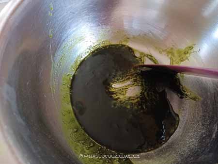 4. Add matcha powder to the sweet mung bean paste and mix to combine