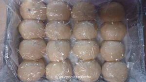- Divide the filling into 16 portions. You can use two 8 x 8 inch or 9 x 9 inch round or square baking pan or 9 x 13 inches baking pan. I like to line it with parchment paper sling, overhanging on the side for easier removal later