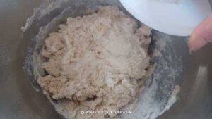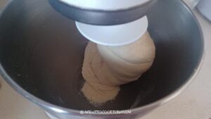 - Place all ingredients for the dough in a mixing bowl of a stand mixer fitted with a dough hook attachment. I use the hook to stir everything to roughly combine the dry ingredients with the wet.