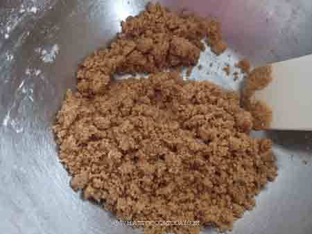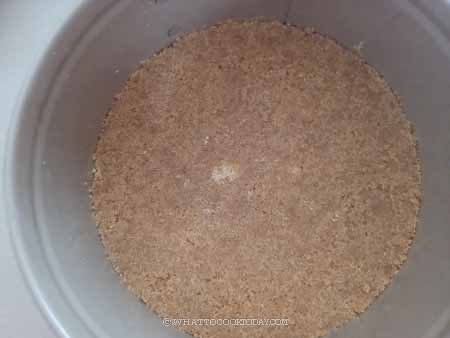 - Press the crumb mixture onto the base firmly. Put in the fridge to let it hardened while you prepare the filling