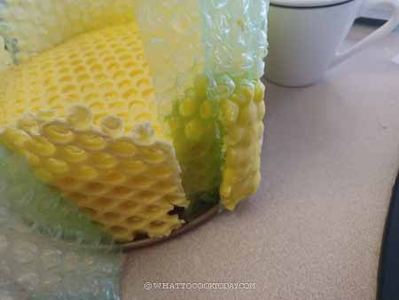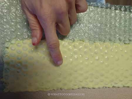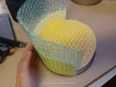 - Cut out about 20 inches long of bubble wrap, about 4-5 inches tall. I don't have such a long bubble wrap at the time I made this cake, so I just use the size I have and made two separate honey combs to wrap around the cake. Wash this clean with soapy water and wipe really dry. I recommend doing this the day before you plan to decorate