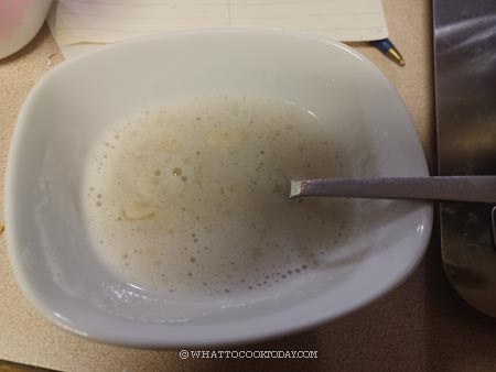4. Place the gelatin and water in a heat-proof bowl and stir to combine. Let them sit for 1-2 minutes to soften the gelatin. Put it in a microwave and microwave on high for about 30-40 seconds. The mixture should be clear
