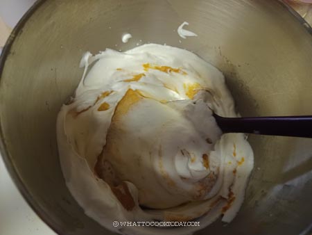 - Once it is combined, add the whipped cream you prepare earlier and use spatula to gently fold to combine evenly