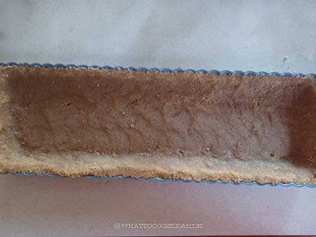 1. The recipe fits 9-inch pie plate or 9-10 inch springform pan or 14″x4.5″ rectangle tart pan, which was what I used in this recipe