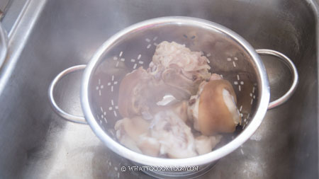3. Drain off all the water and rinse the trotters and hocks with clean water to get rid of scums