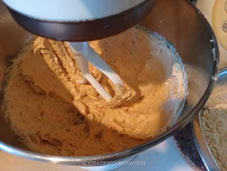 5. Reduce the speed to low and add the dry ingredients and beat just until barely combined. Do not overbeat. It’s okay if it’s not fully combined yet.