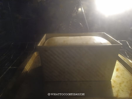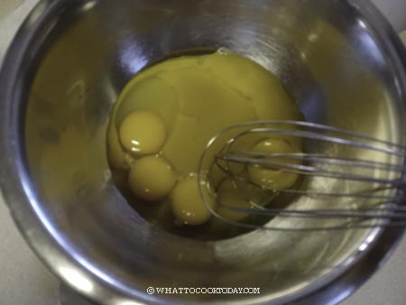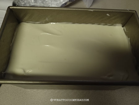 I’m not sure exactly why it is called a pillow cake. My guess would be because of the shape that looks like a pillow. Golden pillow cake is made with the same technique as chiffon cake. The egg whites and yolks are separated. The whites are whipped into a meringue and then combined with the yolk batter. The airy and spongy texture comes from the meringue, which is the only rising agent used in this recipe. The color of the pillow cake is usually yellowish orange in color and I guess that’s why it’s called golden pillow cake most of the time. In short, it’s like a chiffon cake baked in a loaf pan/tin.