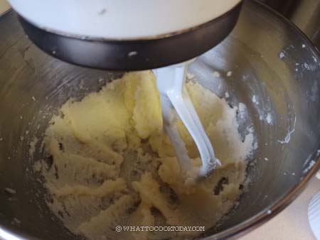 4. In a mixing bowl add softened butter (shouldn’t be melty) and sugar. Cream using a paddle attachment on medium speed until light and fluffy, about 3-4 minutes. Scrape the side of the bowl.