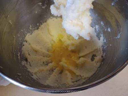 - Add the egg and vanilla and beat again for another 1-2 minutes. Scrape the bowl again. Sift in the dry ingredient mix. Switch to the lowest speed so the dry ingredients won't fly when you turn the machine on. Mix until just combined. It's okay if there is still some flour on the side of the bowl. Use a spatula to scrape the side of the bowl and fold everything in