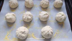- Leave about 1 inch of space in between to allow the dough to expand. I could have fit in more buns, but I didn't.