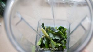 - Cut the leaves into small pieces and add the water and blend until the leaves are chopped up very finely.