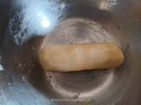 3. Sprinkle your work surface generously with some icing sugar. Roll the dough into a log, roughly about 3 cm (about 1.2 inches) in diameter. Cut into about 3/4 inch thick, you will get about 22-25 pieces