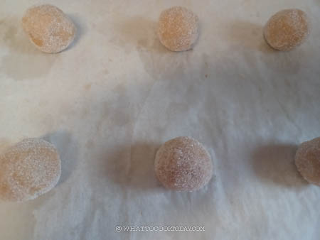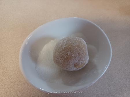 6. Scoop about 2 Tbsp of sugar (you may need more )into a little bowl to coat the cookie dough.