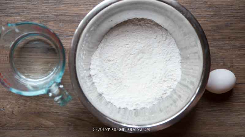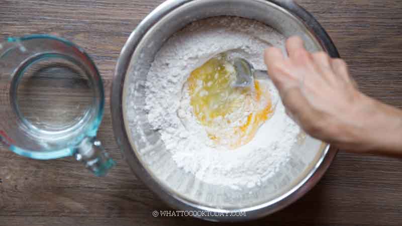 - Mix all the dry ingredients in a mixing bowl. Add the eggs and gradually add water until you get a smooth batter. You may need to strain it through the sieve to make sure it's smooth