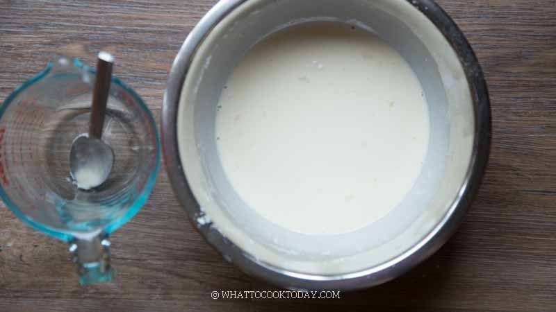 4. Transfer the batter into a place that is deep enough to dip the mould when you fry. Cover and rest the batter for 30 minutes