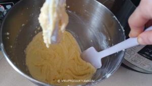 - After all eggs are in, scrape the side of the bowl and beat again until all is well-combined.