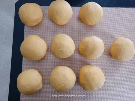 7. Divide the dough into 10 equal portions. Round them up into dough balls.