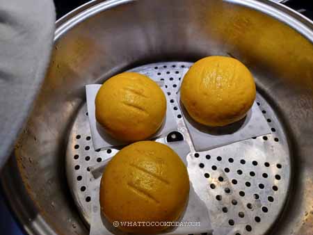 14. After steaming, turn off the heat. DO NOT OPEN THE LID of the steamer. Let the buns sit there for 3 minutes. The buns will not sink or wrinkle due to the sudden change in temperature. Proceed with the next batch and steam with the same method and setting as I mentioned above. You don’t have to wait for the water in the steamer to cool down to start. Just turn on the stove to medium heat, crack the lid open immediately and the time starts when water is back to a simmer again