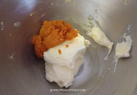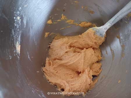 4. Add pumpkin puree and beat for another 20 seconds. Don’t overbeat it. We don’t need to introduce too much air for these cookies