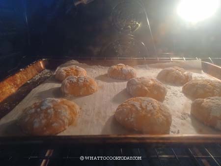 7. Preheat oven at 350 F (180 C) for a conventional oven. You may want to lower the temperature by 20 degrees if you use a convection oven. When the oven is done preheating, scoop about 1 1/2 Tbsp (about 30 grams/scoop # 40) of the cookie dough out. With your lightly oiled palms, roll the dough into a round dough ball. The cookie dough is still sticky but easier to work with because it’s cold. Place it on a lined cookie sheet, about 2 1/2-3 inches apart