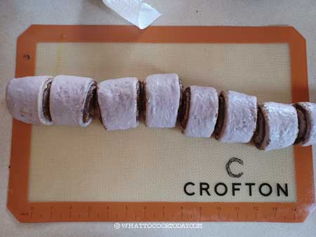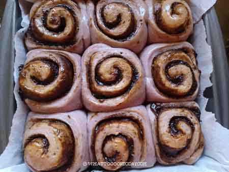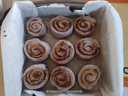 I feel like purple sweet potatoes have been used a lot in baking and desserts of all sorts for the past few years. They seem to be really trending. I have used purple sweet potatoes to make purple sweet potato chiffon cake, mochi bread, wool roll bread, snow skin mooncake, etc. I thought, why not purple sweet potato cinnamon rolls ?