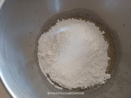 1. Combine all the wet ingredients in a stand mixer bowl fitted with a dough hook attachment and turn on to low speed (stir on Kitchen Aid).