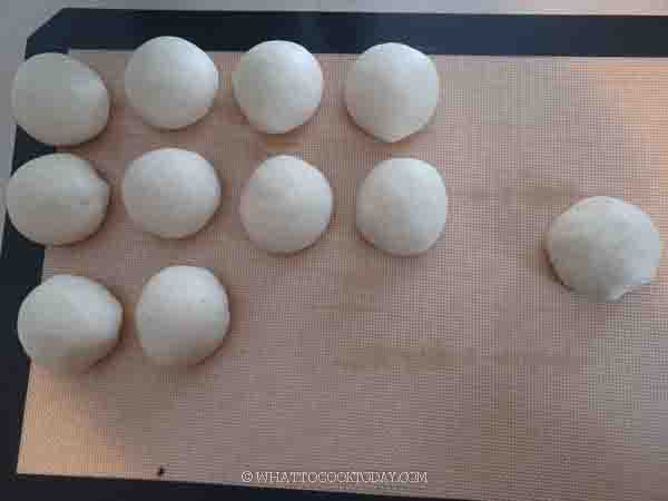 4. Divide the rest of the dough into 10 equal portions and round them up into dough balls. Cover and rest the dough for 15 minutes. This is not to proof the dough. They shouldn’t double in size. This is to relax the gluten for easier shaping