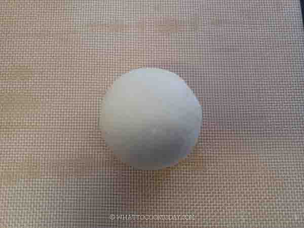 7. Let’s go back to the main dough. Work with one dough at a time and keep the rest covered so they won’t dry out. I didn’t put any filling inside, but you can if you want. It can be sweet or savory filling. Flatten and gather the edge to round them up into dough balls. Pinch to seal. Roll the dough into a smooth round ball in between the palm of your hand. Place the seam side down