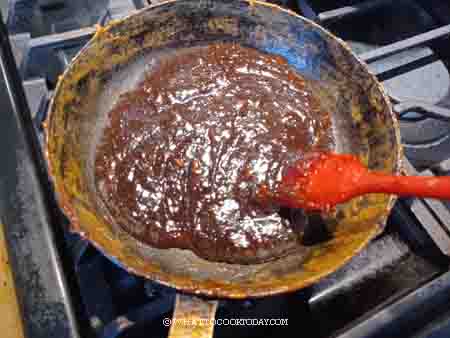 1. Use a non-stick pan. It’s a very sticky paste to start with