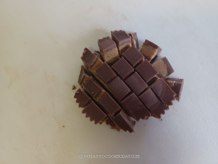 2. Cut the Reese’s peanut butter cup into small pieces.