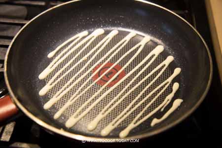 - Place an 8-inch non-stick skillet over medium heat. Rub a paper towel oiled with cooking oil over the cooking surface