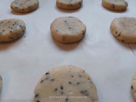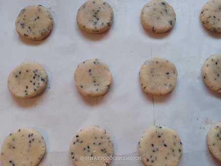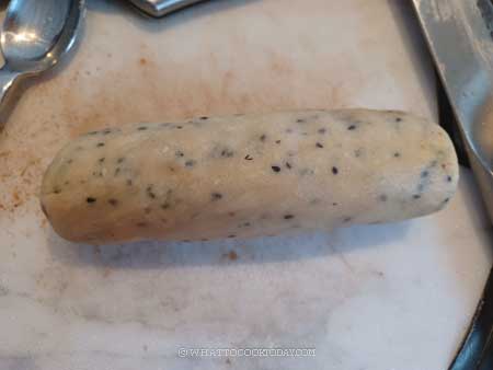 - Add the egg and sesame seeds. Gently knead into a dough and then shape into a log. Wrap in a cling wrap and put in the freezer for 1 hour
