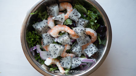 HOW TO MAKE SHRIMP DRAGON FRUIT SALAD WITH SESAME PLUM DRESSING