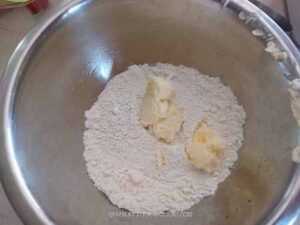 - Use your hands to rub the butter into the flour mixture. It would resemble some coarse crumbs. Add the water and gently knead into the dough. You may need more water or you may not. I only used 50 grams of water