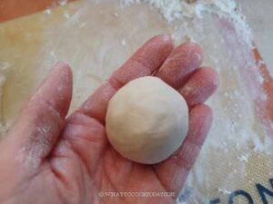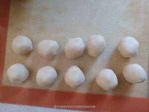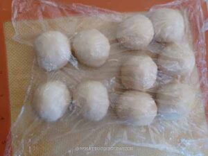 - After resting the water dough, divide into 16 pieces (about 26 grams each). Round each one into a dough ball. Lightly dust your work surface with a bit of flour if necessary