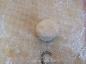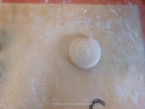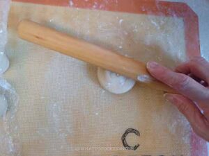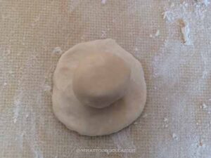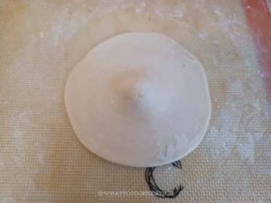 - Use a rolling pin to roll it out from the center and outward to form a circle about 5 inches wide and slightly thicker at the center.