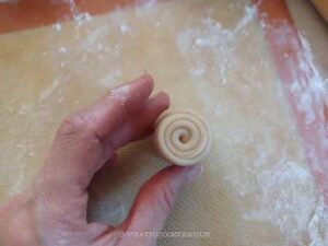 - Work with one dough at a time and keep the rest covered. Place the seam side up.