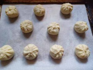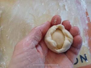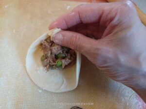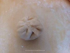 - Place the filling on the center and then pleat the dough and pinch to seal the dough well.
