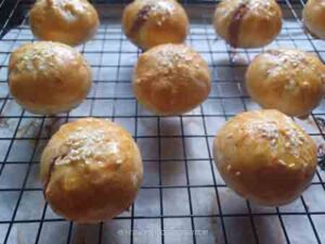 - Remove from the oven and brush with some egg wash and sprinkle some sesame seeds on top. Put the baking sheet back into the oven and bake for another 20 minutes or until they are golden brown
