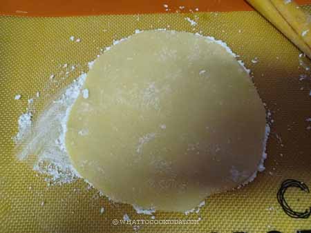 - Transfer to a work surface and knead a few times. Wrap it tightly with a cling wrap. It can be made ahead and kept in the fridge. Simply let it comes to a room temperature and knead a few time to soften it a bit
