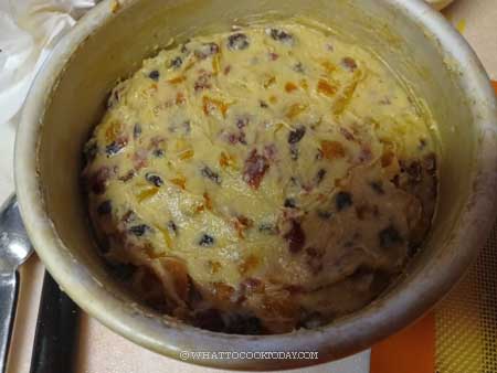 12. Bake in a preheated oven, middle rack for about 1 1/2 hours or until the cake has risen and dry to touch on top. It should spring back slightly when you touch. A toothpick inserted will come out with some sticky crumbs is normal as long as it’s no longer wet. Let the cake cool down completely inside the pan, on top of a cooling rack. Don’t unmold the cake until it has cooled down completely