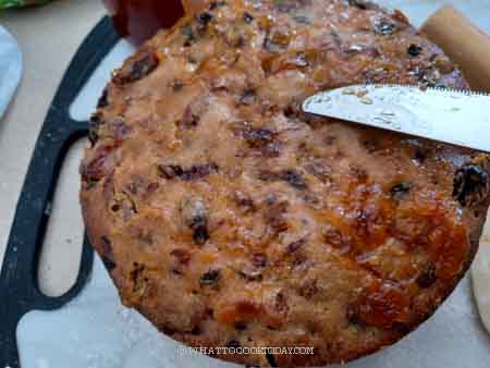Taste: The cake is not overly sweet despite the marzipan and the dried fruit scattered inside the cake