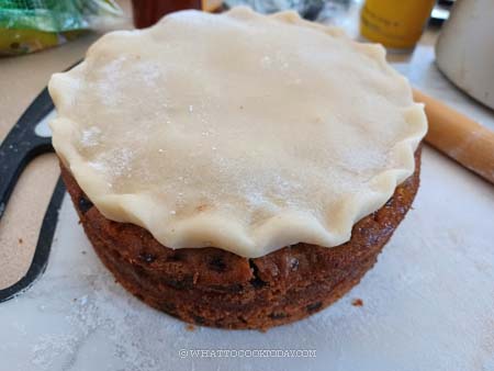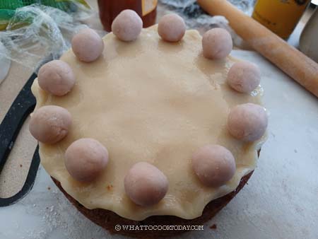 14. Carefully place the marzipan on top of the cake. I kinda make the edge of the circle a bit “wavy” (just because..). You don’t have to