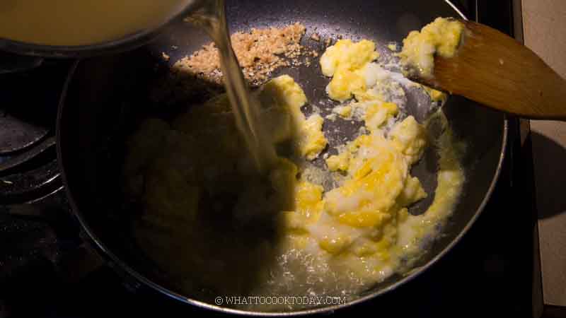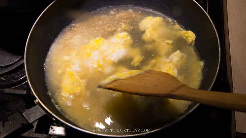 7. Then start scramble them until about 80 % cooked, so they are still a bit wet