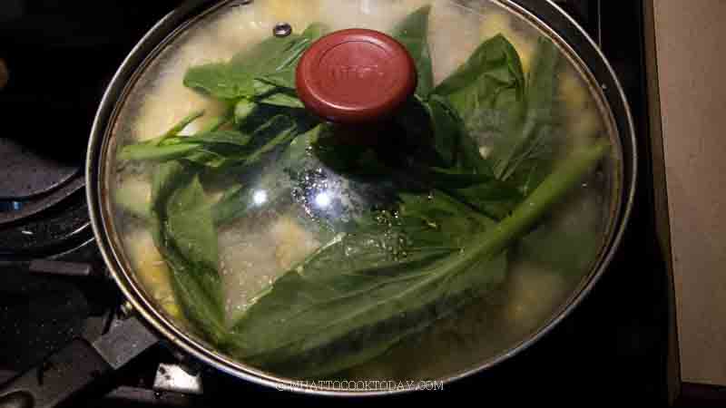 10. Uncover and then I add the yu choy and cover and let it cook for another minute