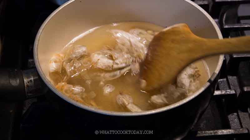 A while ago I made this stir-fried white bee hoon, which we really enjoyed. It’s almost similar to this seafood white bee hoon, but that version is dry without any gravy. The Singapore seafood white bee hoon is made famous by a coffee shop in Sembawang. What makes the seafood white bee hoon so special is the stock that is slowly cooked for hours and hours. The stock is used to simmer the bee hoon. The appearance of the dish is really nothing that will scream “MUST TRY” when you first look at it. It’s kinda of like a “wet” stir-fried bee hoon. But we do enjoy it.
