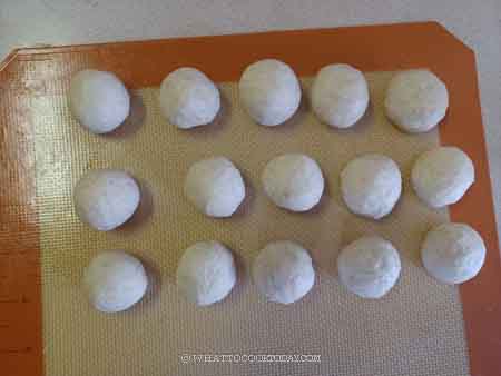 - Divide the dough into 16 equal portions. I actually weigh the dough, about 20 grams each portion. Round it up into a ball. Keep them covered