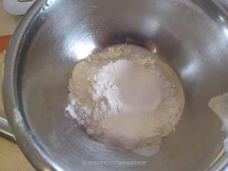 - Combine flour, yeast, salt, sugar and baking powder in a mixing bowl. Add oil and water and knead into a dough. It may not be smooth yet. Cover and let it rest for 20 minutes