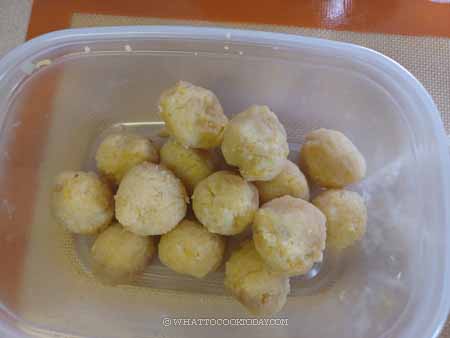 The left soft mung bean cakes were cooked on the stove and the right were baked in the oven. The one baked in the oven are actually nicer in texture IMHO. It’s softer and airier versus the one baked on the stove. The color of the ones baked in the oven are also more even. But they are both nice!